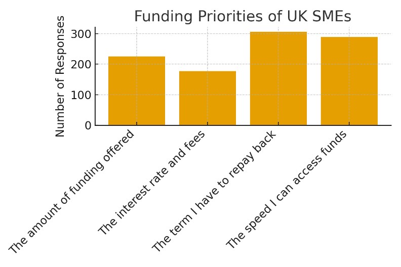 When assessing funding offers, SMEs highlighted several key factors that shape their decision-making. The repayment term emerged as the most important factor, followed by the speed of fund disbursement, and the amount of funding available. Interest rates and fees, although important, were not ranked as highly. This underscores that while cost of capital matters, flexibility and liquidity are more pressing concerns for many small firms. The findings suggest that lenders and funders should adapt their offerings to emphasize convenience and customization.